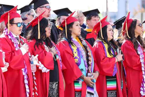 State sees 30-spot climb since 2019 University of New Mexico graduates at San Juan College stand in tribute during the signing of the national anthem portion of the commencement exercises on May 11, 2024. (Curtis Ray Benally/Special to the Tri-City …